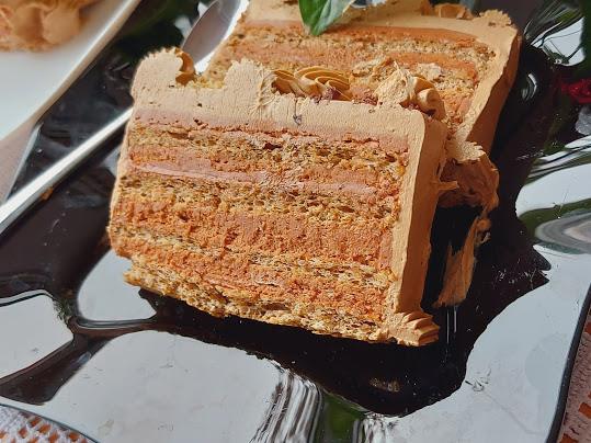 Dobro izjednačiti i istresti u pleh od rerne obložen pek papirom. Peći 15-20 min. na 180 min. Umutiti ponovo isto i ispeći još jednu koricu pa kad se prohlade preseći na pola da se dobiju 4 korice.