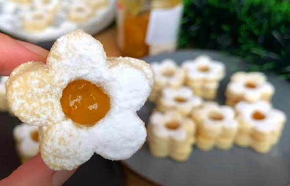 Na donje keksiće stavite malo džema, pa preklopite gornjim keksićiam sa šećerom u prahu.