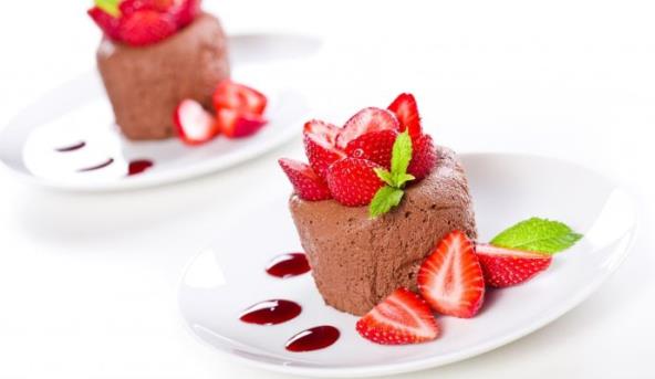 4. Izvaditi kapućino krem iz kalupa i ukrasiti jagodama i marinadom.