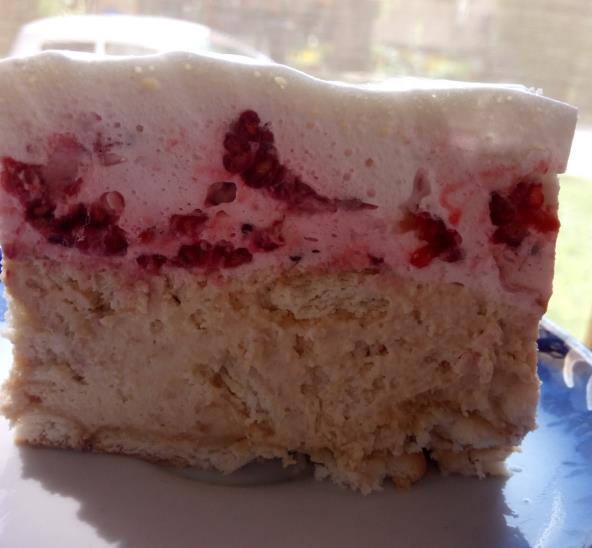 Odozgo tortu ukrasite šlagom umućenim po uputstvu na kesici, stavite je u frižider da se dobro stegne (najbolje preko noći), pa je poslužite. Prijatno!