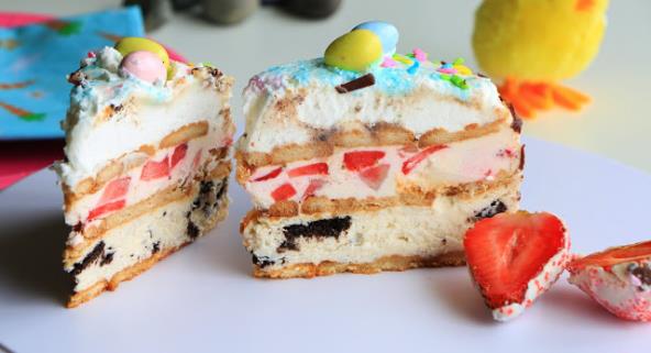 Keks umačite u mleko i slažite na dno kalupa, potom oreo fil, opet keks, jagoda fil, keks..odozgo stavite po želji (šlag, krem šlag, čokoladu..). Držite je u frižideru do sutradan da se stegne i keks omekša.