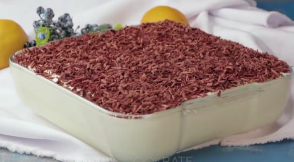 Pavlaku umutite sa šećerom u prahu, pa sjedinite obe smese. Sipajte u tepsiju dimenzija 22x22 cm, poravnajte i narendajte čokoladu preko. Stavite u frižider pola sata.