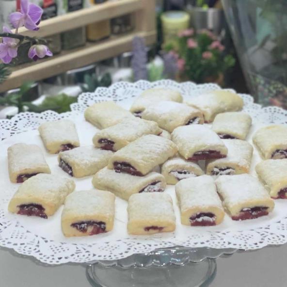Izmutiti mast, pavlaku, vanilicu i koricu limuna. Dodati brašno i prašak za pecivo pa umesiti testo. Razviti i iseći na šire trake. Premazati džemom, uviti i iseckati u oblike. Peći 10-12 minuta na 200 stepeni. Posuti prah šećerom. Prijatno!
