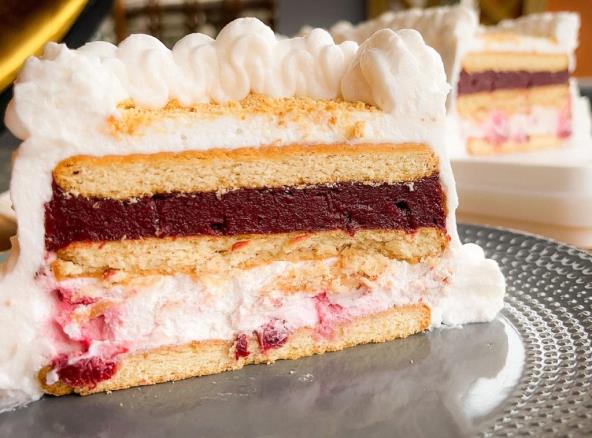 Kalup 30×10 cm, obložite streč folijom. Na dno poređajte red plazma keksa, koji ste predhodo umakali u mleko. Preko stavite vruć fil sa višnjama i čokoladom. Zatim red plazma keksa, koji ste predhodo umakali u mleko, pa fil sa Višnjama i šlagom. Na kraju stavite plazma keks, koji ste predhodo umakali u mleko.