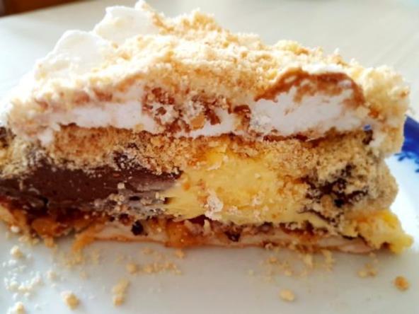 Pomešajte sastojke za koru i dobro ujednačite žicom. Ispecite je. A kada je gotova stavite je na tacnu i premažite kremom.