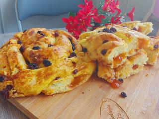 Napraviti dve pletenice i poredjati u pleh. Premazati malo uljem i pokriti folijom i krpom da odmori. Kad pletenice porastu malo staviti suvog groždja u delove gde se spajaju pri uvijanju.