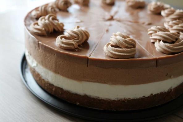 Fil : Umutiti slatku pavlaku i dodati maskarpone sir, zatim dodati šećer u prahu i fil podeliti na dva jednaka dela. U jedan staviti nutelu a drugi ostaje beo. Prebaciti u kalup prvo beli fil pa na njega tamni fil i staviti u frižider da se hladi dok pripremimo preliv.