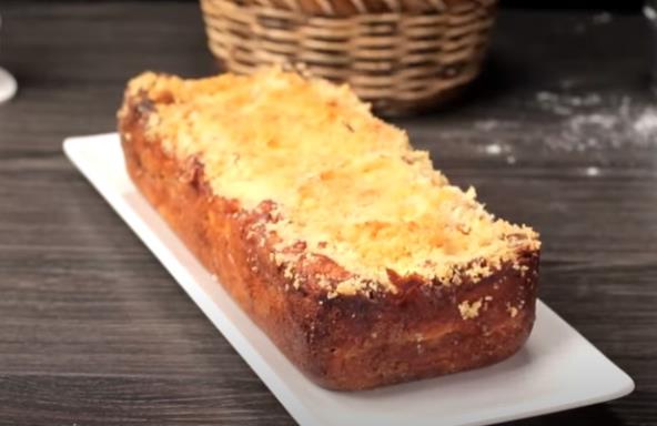 Sastojke za biskvit pomešajte rukama u jednoj posudi da dobijete nešto nalik zrnastoj strukturi. Tu smesu zatim kroz cediljku pospite preko gotovog voćnog dela. Vratite onda sve u rernu na još 20 minut. Gotov kolač ostavite na sobnoj temperaturi 2-3 sata pa služite.