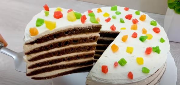 Filujte palačinke i slažite jednu na drugu. Odozgo ukrasite po žeji. Ostavite u frižideru najmanje 2 sata pre sečenja.