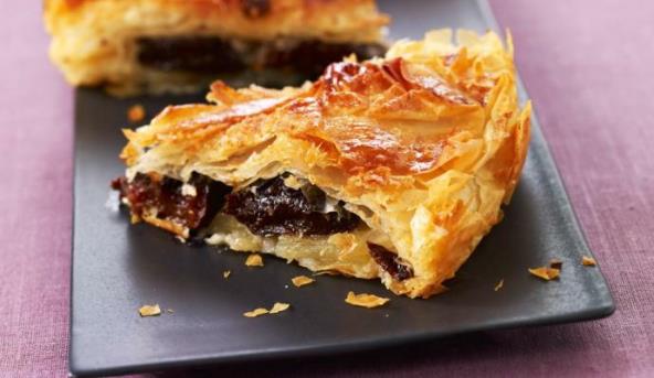 3. Kore i šljive pospite mlevenim orasima, pa pažljivo savijte kore kao za štrudlu.