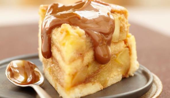 3. Ređajte u pleh naizmenično red keksa i red jabuka s pudingom. Završni red je keks.