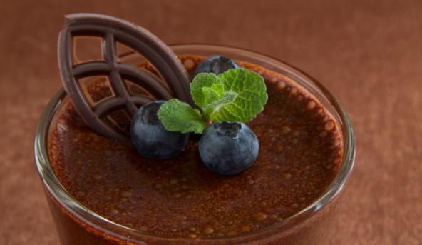 1. U šerpi propržite šećer, zalijte vinom i sokom od limuna i mešajte dok se ne rastopi. Dodajte borovnice, poklopite i pustite da sos provri. Umešajte gustin razmućen u malo vode. Podelite na čaše.