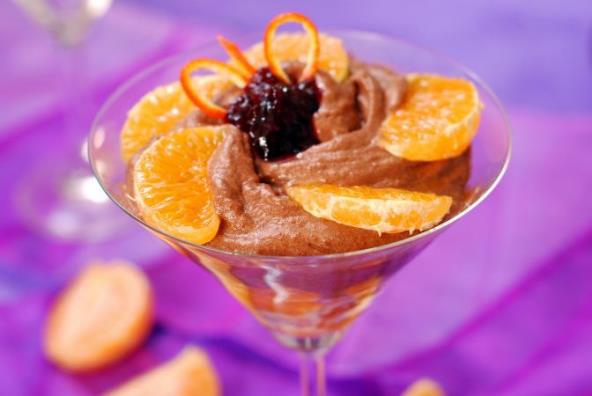 4. Izmešati sos sa musom, sipati u čaše i ukrasiti filetima pomorandže i kašičicom džema od šumskog voća.