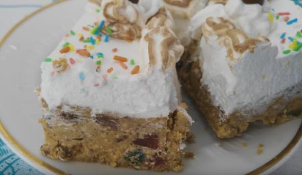 Margarin dobro mikserom umutiti sa mlevenim šećerom pa dodati sve navedene sastojke (sem šlag pene), i dobro izmešati varjačom. Rukom i rasporediti na tacnu.