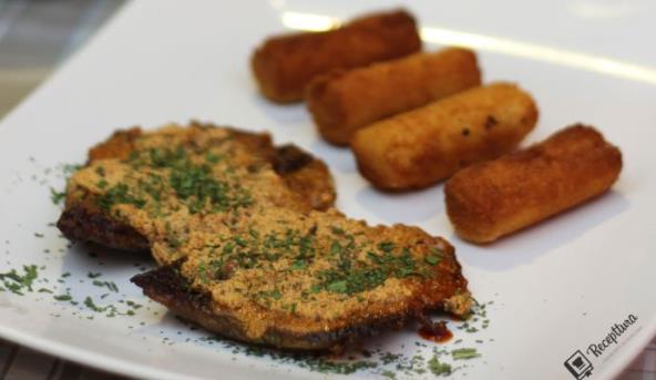 7. Dok je meso u rerni, ispržiti krokete i poslužiti uz zelenu salatu.