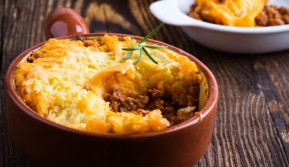 5. Prebacite pripremljeno meso i povrće u posudu za pečenje, na vrh dodajte pire krompir i rasporedite ga ravnomerno pomoću kašike. Zatim viljuškom prođite po krompiru i dodajte naseckani peršun. Sve zajedno stavite u zagrejanu rernu na oko 40 minuta, dok vrh pite ne poprimi zlatno-smeđu boju. Pre posluživanja dodajte još malo naseckanog peršuna i bibera i uživajte!