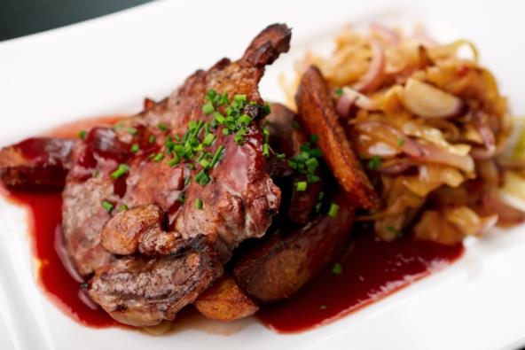 2. Na masnoću koja je ostala od pečenja stavite lovor, origano, timijan i beli luk (istisnite ga kroz gnječilicu), pa sve zajedno propržite uz mešanje. Kad masnoća zapeni, pikantno je posolite i pobiberite, pa podlijte crvenim vinom.
