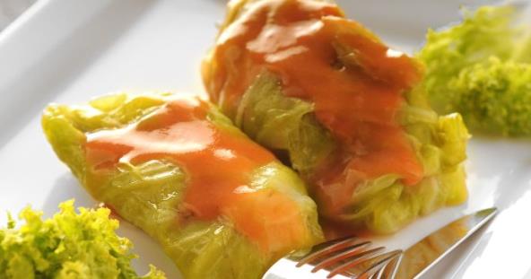 3. Kuvane sarmice izvadite, sok od kuvanja povežite razmucenim skrobom, a zatim skinite s vatre i u sosu otopite maslac od kikirikija. Ovim sosom prelijte sarmice. 520 kcal