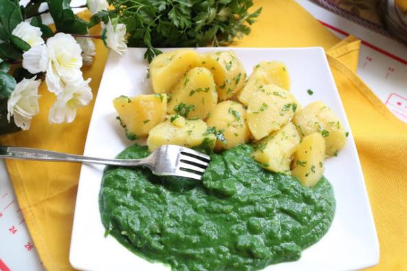 Spanać oprati, očistiti, pa skuvati i izmiksirati. Na ulju propržiti sitno seckan crni luk dodati kašiku brašna i izgnječen beli luk i još upržiti. Dodati blendirani spanać i naliti vodom onoliko koliko želimo gustinu. Dodati začina, soli.