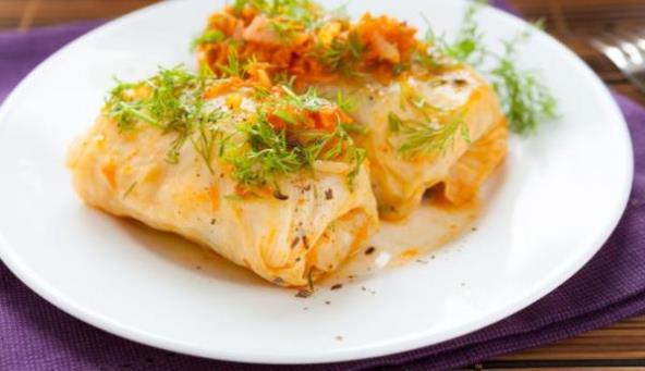 2. Sve dobro izmešajte i punite listove kupusa, zelja ili vinove loze, koje je potrebno prethodno obariti u vreloj vodi, tek koliko da omekšaju. Sarmice se uvijaju tako što se na koren lista stavi jedna do jedna i po kašika nadeva za srednje listove, a dve do dve i po kašike za velike, i uvije dok ima lista. Krajeve lista koji ostanu sa strane ušuškajte ka unutra. Poređajte sarmice u šerpu i nalijte rastvorom vode i paradajz soka. Kada su skuvane, pažljivo premestite u zemljani ili vatrostalni sud i zapecite u rerni oko 20 minuta.