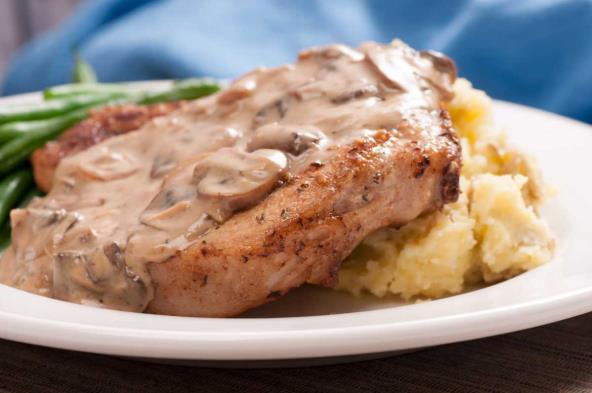 Kada je masa zagrejana i izmešana, dodajte pečurke da se sve sjedini i prelijte preko kotleta, koji su već servirani na tanjire. Prijatno!