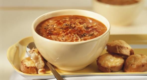 Povrće iseckajte, dodajte meso isečeno na kockice, kupus isečen kao za salatu (sitno). Na kraju prelijte paradajz sosom i kuvajte na najmanjoj temperaturi oko 2,5 sata, s povremenim protresanjem lonca.