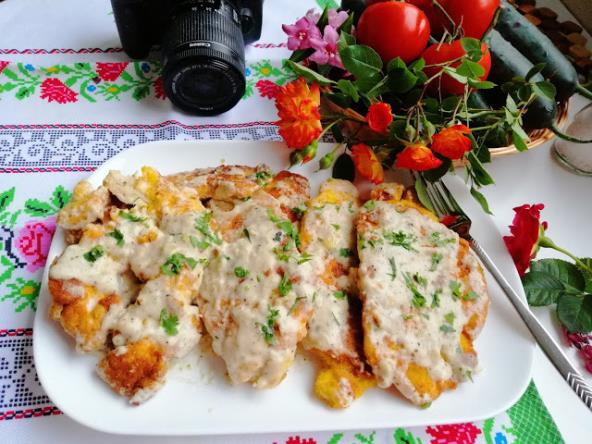 Šnicle poređati u tanjir, pa ih preliti sa prelivom od pečuraka i pavlake. Uživajte u fantastičnom ukusu ...