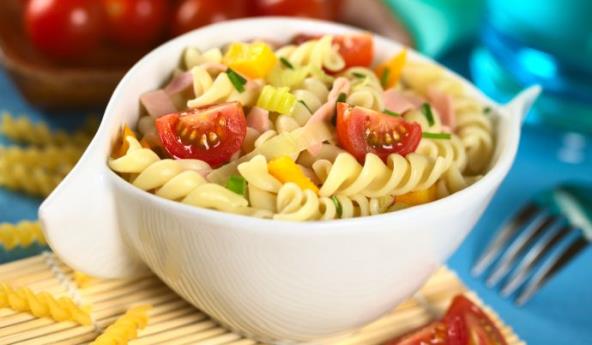3. Testeninu skuvati u malo posoljenoj vodi, preliti hladnom vodom i dobro ih ocediti. Zatim ih, zajedno sa skuvanim povrćem prebaciti u dublju činiju za supu. Potom fetu iseći u kockice. Iz maslina izvaditi koštice, pa ih iseći u tanke kolutove, pa ih kao i kockice sira rasporediti preko izmešane testenine sa povrćem. Po želji, ukrasiti začinskim biljem i služiti dok je još toplo.