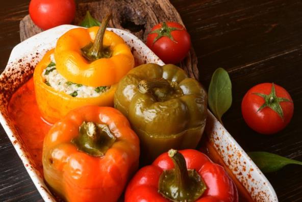 Punjene paprike poređati u nauljenu vatrostalnu činiju i peći u zagrejanoj rerni na 200 stepeni dok paprike ne porumene.