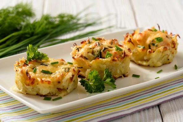Zagrejati rernu na 200°C. Pomešajte u posudi pire, jaja, biber, šunku/slaninu, vlašac, deo sira; posoliti zavisno od toga tome je prethodno pire posoljen. Staviti u svaki kalup kašiku smese i posuti sirom preko. Peći oko 20 minuta, odnosno, dok gornji sloj ne postane zlatnosmeđi. Poslužiti toplo uz kašiku kisele pavlake. Ovako pečeno, može se čuvati do tri dana u frižideru.