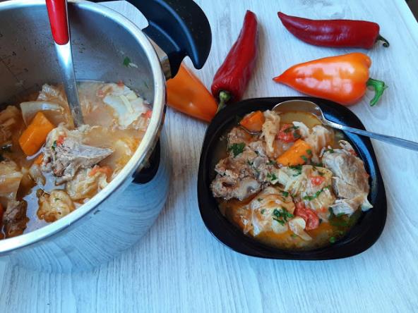 Kupus očistiti i iseći na krupne komade. Pola glavice staviti na dno lonca. Na kupus dodati meso, celer, šargarepu, paradajz, začin i malo soli po želji, brašno, slatku i ljutu crvenu mlevenu papriku, zelena slatka i ljuta sveža paprika, list celera. Preko toga naseći drugu polovinu kupusa i preliti uljem.