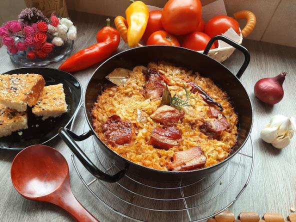 Na masti propržiti sitno seckan crni luk, pa kad postane staklast dodati sitno seckan kiseo kupus i njega prodinstati, dodati suva rebra, tucanu papriku, slatku papriku, lovorov list, biber u zrnu i suvu papriku. Dinstati oko 30 min. pa dodati beli luk sve i izjednačiti. Pokriti sa folijom i staviti u rernu oko sat vremena. Pred kraj otklopiti da se lepo zapeče.