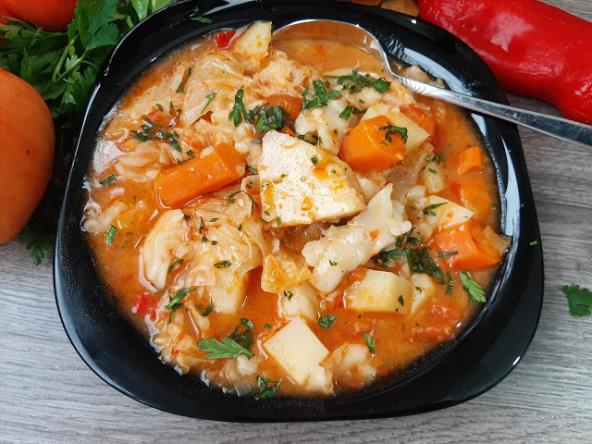 Kupus iseći na krupne kocke, a ostalo povrće očistiti i iseći na sitnije delove. Na dno lonca staviti pola kupusa, dodati krompir na kocke, oljušten i isečen paradajz, papriku zelenu svežu, celer isečen na kocke. Dodati testeninu i krupno sečenu šargarepu. Ubaciti ajvar, beli luk na pola sečen, alevu i tucana ljuta paprika, začin, so i list celera. Dodati drugu polovinu kupusa i odozgo maslinovo ulje.