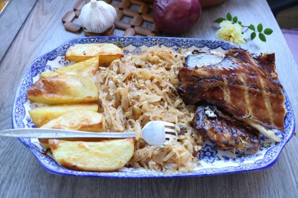 Na ulju propržiti seckan crni luk, smanjiti vatru, pa dodati slatku crvenu pariku i tucanu ljutu papriku.Odozgo sipati kupus isećen na tanka rebarca. Sve dobro izmešati i dinstati oko 15 min. dodati malo vode. U kupus dodati seckan beli luk, mleveni biber i lovorov list i preko polovinu dimljenog šarana. Pošto je šaran usoljen samo ga lepo premazati uljem. Staviti u rernu oko 50-60 min.