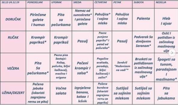 Savetujemo vam da napravite plan, bilo da prepišete ovaj ili napravite sopstveni. Nabavite namirnice da vam budu pri ruci i priprema će biti umnogome lakša!