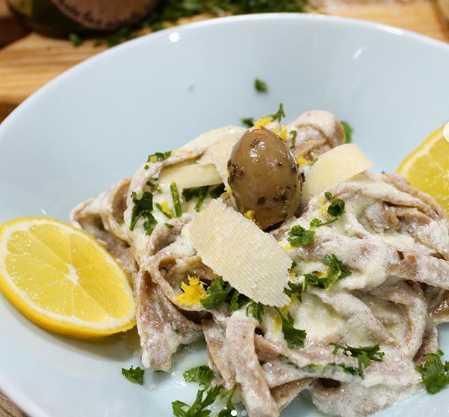 Sipati rikota sir u vatrostalnu posudu. Dodati parmezan, maslinovo ulje, limunov sok i malo rendane kore, so, biber, pa viljuškom dobro ugnječiti smesu i sve lepo promešati. Stvaiti pastu da se kuva i preko šerpe poklopiti vatrostalnom posudom sa smesom od rikote da se blago greje. Dodati vodu od testenine u sos, kratko mešati da se dobije kremasta struktura. Kada je testenina gotova ubaciti je u sos i poslužiti sa malo svežeg peršuna.