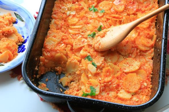 Ukusno jelo iz rerne jeftino i brzo, može i sa mesom i kobasicama ali ovako je isto veoma ukusno.