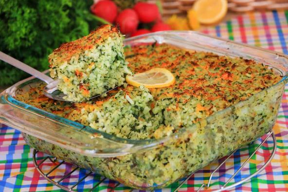 Pirinač operite i skuvajte. Izdinstajte luk pa izmešajte sa kuvanim pirinčem, dodajte iseckan beli luk, peršun, iseckan spanać. Začinite i stavite u tepsiju. Odozgo narendajte mali komadić šargarepe. Pecite na 220 stepeni oko 20 minuta.