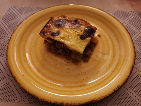 Mleveno meso prodinstajte na malo ulja, pa dodajte sitno iseckan crni luk, šargarepu i malo pelata. Dinstajte dok se ne zgusne, pa posolite i pobiberite. Tikvice isecite uzduž, pa poređajte na dno posude za pečenje, preko sipajte sipajte mleveno meso, pa opet red tikica. Zatim napravite smesu od jaja i kiselog mleka i prelijte musaku. Pecite u rerni na 200°C.