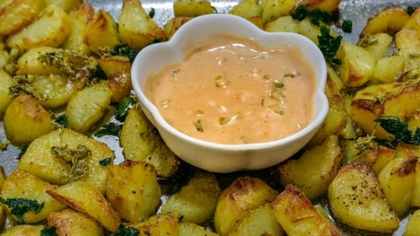 Za sos vam je potreban majonez, kečap, krstavčići, sok od krastavčića. Sve dobro promešajte.