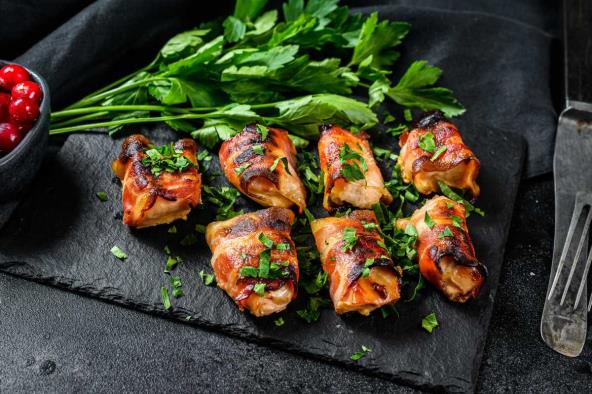 U srednjoj posudi pomešajte krem sir, spanać koji ste prethodno odmrzli i ocedili i ½ šolje mocarele. Posolite i pobiberite i stavite malo tucane paprike, pa sve lepo promešajte. Svaki drugi prorez napunite smesom od sira i spanaća, a preostale proreze napunite komadom slanine. Ostatak mocarele stavite preko piletine i malo nauljite. Pecite dok piletina ne bude kuhana, a slanina hrskava nekih 35 minuta.