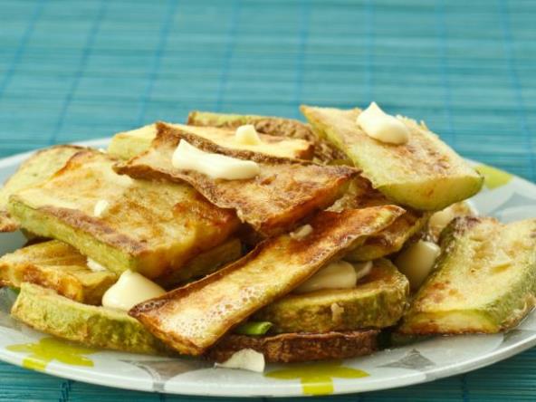 Zagrejati ulje u tiganju. Svaku tikvicu potopiti na sekund u posudu sa vodom i ledom i stavljati u tiganj da se prže. Tikvice se prže sasvim kratko, jer su mnogo tanke. Gotove tikvice stavljati na ubrus da upije višak masnoće.