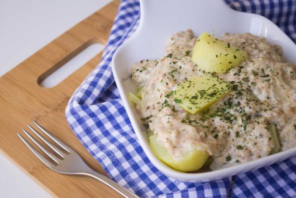 Najbolje je kada se krompir spremljen na ovaj način služi sa faširanim šniclama.