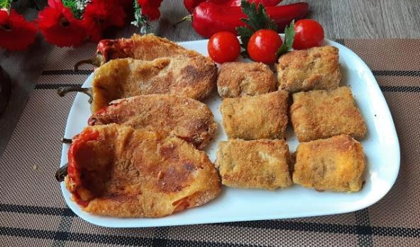 Uvaljati u brašno, jaja i prezle. Pleh dobro podmazati i redjati u njega. Ako želite i papriku pohovati ispeći, oguliti i posoliti.