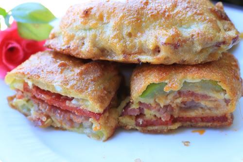 Uvaljati u brašno, provući kroz jaja, prezle i opet jaja. Redjati u podmazan pleh i peći na 220 stepeni oko 40 min.