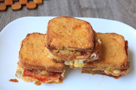 Priprema: Na jedno parče hleha stavite kačkavalj, pa listove pečene paprike, suvi vrat ili šunku i 2 parčeta kulena. Stavite drugo parče hleba preko nadeva. Jaja umutite, a brašno i prezle sipajte na foliju. Sendvič umočite u brašno, jaja, prezle i jaja. Ređajte u podmazan pleh. Odozgo sipajte par kapi ulja i pecite na 200°C.