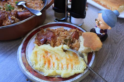 Na ulju propržite krupno sečen crni luk, kad se uprži dodajte na rezance isečen kupus. Ako je kupus kiseliji operite ga. Pržite malo kupus, pa dodajte kolenicu koju ste isekli na komade, meso, lovorov list, tucanu i slatku papriku. Sve dobro promešajte i još dinstajte. Na kraju dodajte seckan beli luk. Sipajte u đuveč ili neku tepsiju. Pecite u rerni na 220°C da se lepo zarumeni.