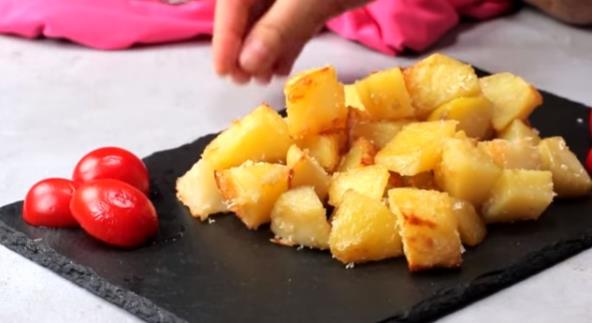 Krompir isectie na kocke i kuvajte u vodi nekih 7 minuta. Zatim ocedite i prebacite u pleh koji ste premazali sa kašikom maslinovog uljem. Posolite i sipajte preostalo ulje. Promešajte rukama. Pecite 10 minuta na 180°C. Izvadite, sipajte pivo i vratite da se peče još 10 minuta. Na kraju sipajte prezle i vratite da se dopeče još 10 minuta.