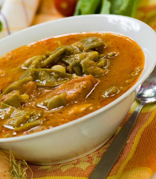 2. Za to vreme operite boraniju, prepolovite je, dodajte mesu i kuvajte još 20 minuta. Dok se kuvaju meso i boranija, paradajz prelijte vrelom vodom, oljuštite ga i isecite na manje komade, pa zajedno sa čubrom i kockom za supu dodajte boraniji i mesu. Kuvajte sve dok boranija potpuno ne omekša.