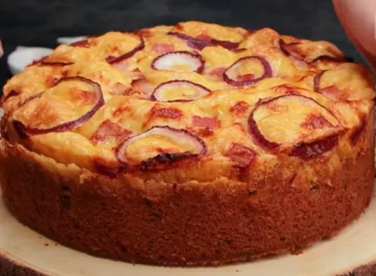 Jaja umutite, a zatim dodajte pavlaku za kuvanje, so, biber, ulje, mleko, brašno, prašak za pecivo i istopljeni maslac. Promešajte. Zatim dodajte sitno seckanu slaninu i praziluk. Opet promešajte i sipajte u kalup prečnika 22 cm obložen pek papirom. Rasporedite, pa preko stavite rendani kačkavalj. Preko kačkavalja poređajte još malo seckane slanine, zatim kolutove ljubičastog luka. Pecite na 180°C 40 minuta.